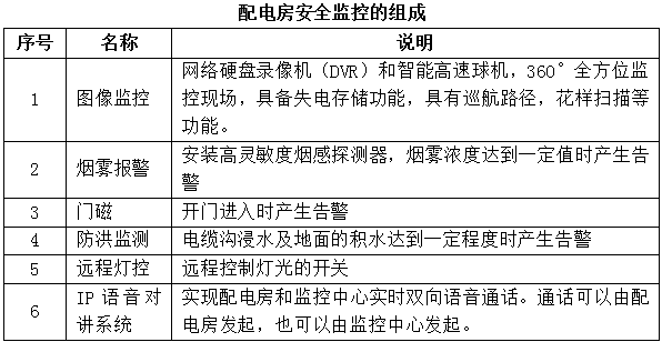 開(kāi)閉所、配電房一般為無(wú)人值守,除了實(shí)現(xiàn)電氣監(jiān)控功能,應(yīng)同時(shí)實(shí)現(xiàn)視頻監(jiān)控功能,以及防火、防水浸、防入侵等安全監(jiān)控功能,實(shí)施可視化運(yùn)行和安全綜合監(jiān)控。因此,需要在配電房安裝智能綜合監(jiān)控設(shè)備,通過(guò)視頻監(jiān)控綜合平臺(tái)實(shí)現(xiàn)視頻監(jiān)控、煙霧報(bào)警、防洪監(jiān)測(cè)等綜合監(jiān)控功能。其他的一些智能監(jiān)控功能也是必須的,包括遠(yuǎn)程燈光控制、語(yǔ)音對(duì)講等。