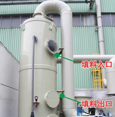 噴淋塔內的填料多久更換,首先取決于噴淋塔內填料是否變臟,由于客戶廢氣種類的不同,廢氣產生源頭前端的工藝不同,有酸洗、有堿洗、有陽極氧化、有實驗室排氣,有來自污水處理池頂部加蓋廢氣。相對來說酸洗使用的硝酸容積,噴淋塔能填料比較容積臟,通過循環(huán)水泵的噴淋,填料表面會氧化形成黃黑色膜,整個循環(huán)液也很臟,此時噴淋塔填料需要更換。由此看出噴淋塔內的填料多久更換還是觀察填料表面是否變臟。