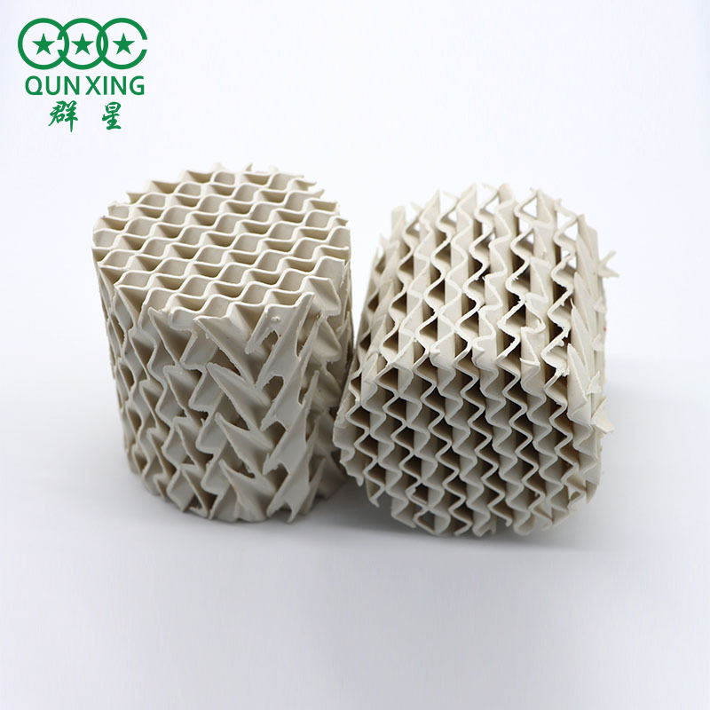 4.陶瓷孔板波紋填料金屬、塑料波紋填料具有優(yōu)良的技術(shù)經(jīng)濟(jì)性能,但對(duì)于高溫(~500℃)和腐蝕性介質(zhì)的蒸餾、吸收等分離,顯然不能勝任。而陶瓷孔板波紋填料不J具有波紋填料優(yōu)良的綜合性能外,還具有陶瓷的耐酸、堿腐蝕性和良好的表面潤(rùn)濕性能,又耐高溫和低溫,適用于較強(qiáng)腐蝕性物系的物料分離。陶瓷的造價(jià)也比較便宜。匯總起來(lái),陶瓷孔板波紋填料的主要適用范圍是: